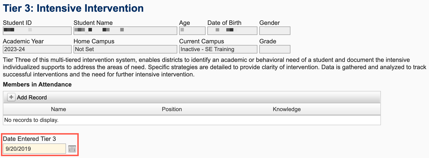 - Follow your district's procedures when addressing any prepopulated data that appears on RTI/MTSS forms.